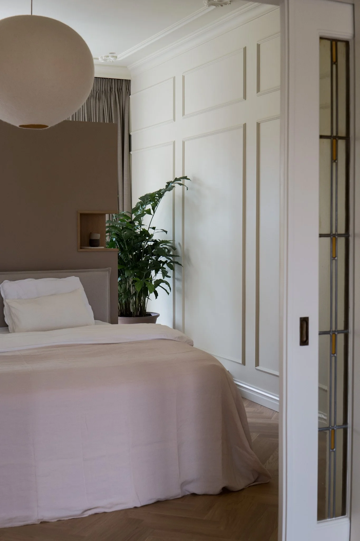 The homeowners came to us with a clear vision: they wanted a space that felt both classic and contemporary, with a softness that invites relaxation. They were particularly inspired by the elegance of traditional design elements, and we immediately knew that incorporating ornamental mouldings would be key to achieving this aesthetic.